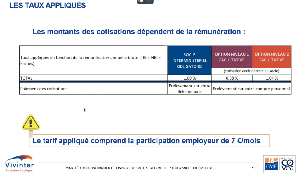 Vous trouverez ci-dessous les extraits de la présentation qui avait eu lieu l’an dernier concernant le montant des cotisations. Par ailleurs le simulateur, vous permettant d’estimer le montant de votre cotisation et donc la régularisation à venir, est disponible au lien suivant : https://www.vivinter.fr/fonctionpublique/mef/#comparer